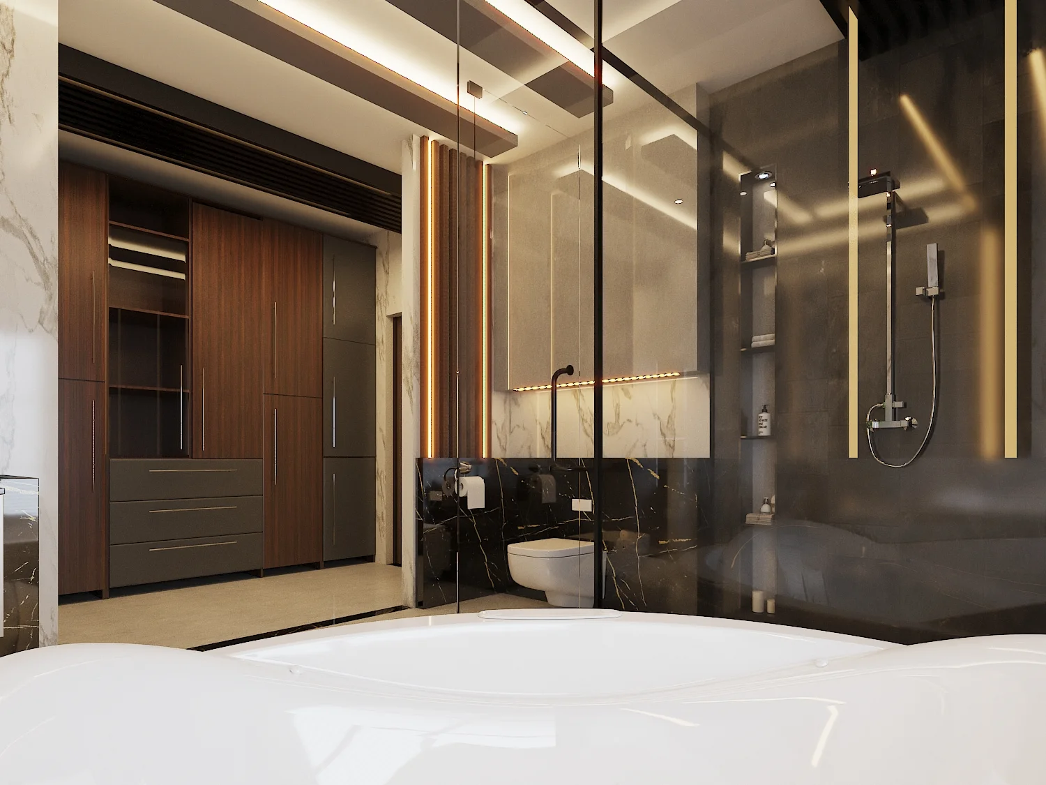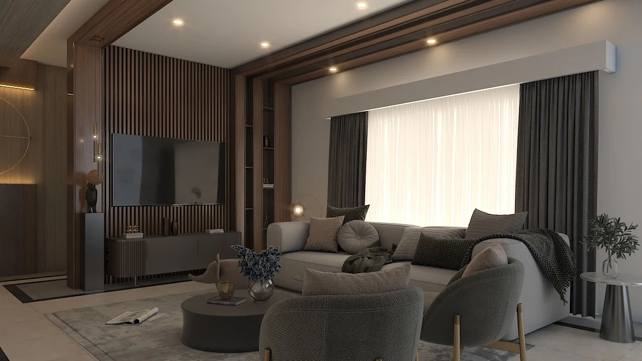 At 217, we transformed the interior into a calming, personalized space using neutral tones, strategic lighting, and customized woodwork. The goal was a serene environment with functional elegance.